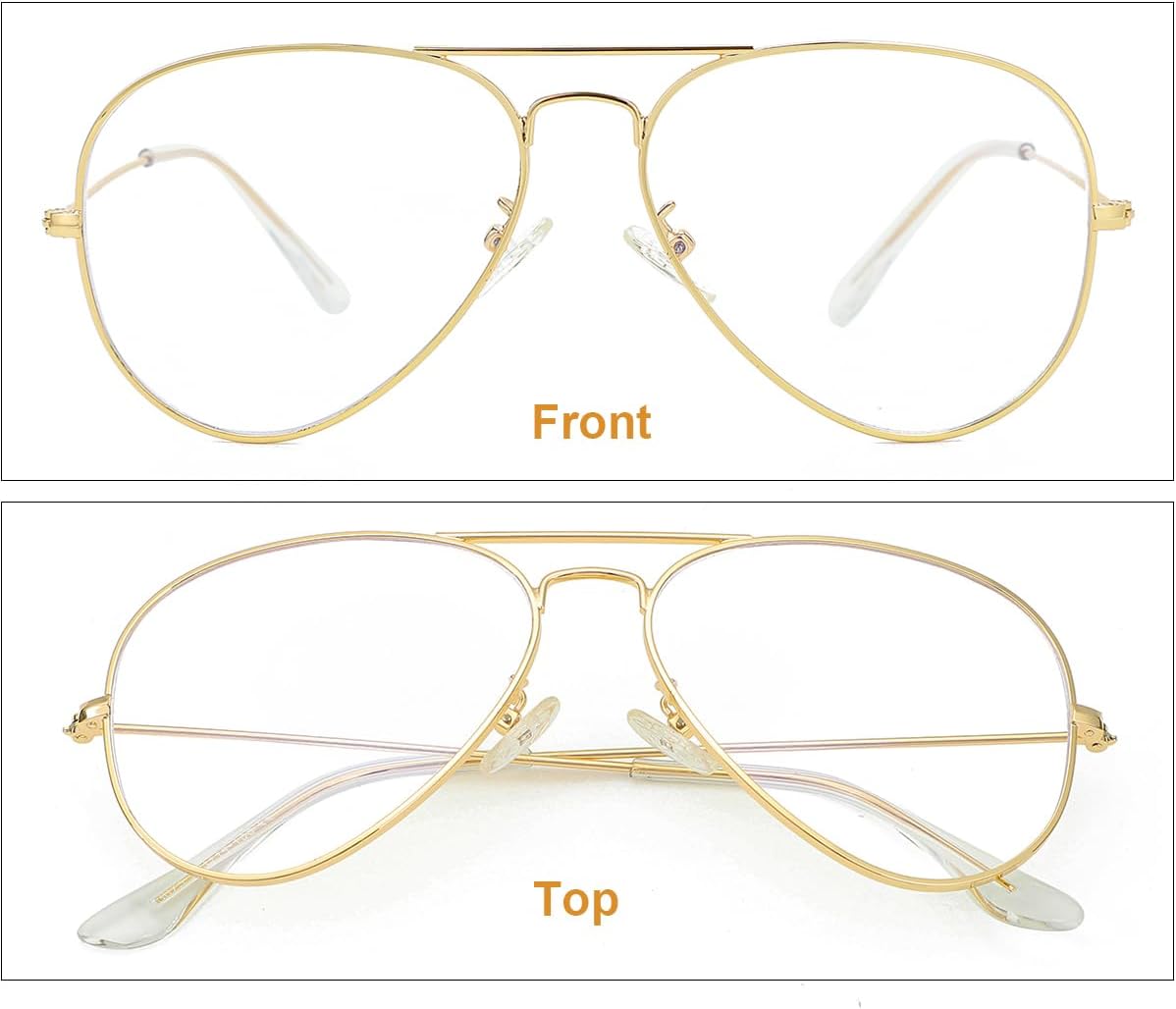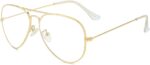 Classic Aviator Blue Light Glasses for Women Men, Metal Frame Clear Lens Eyeglasses (Gold)