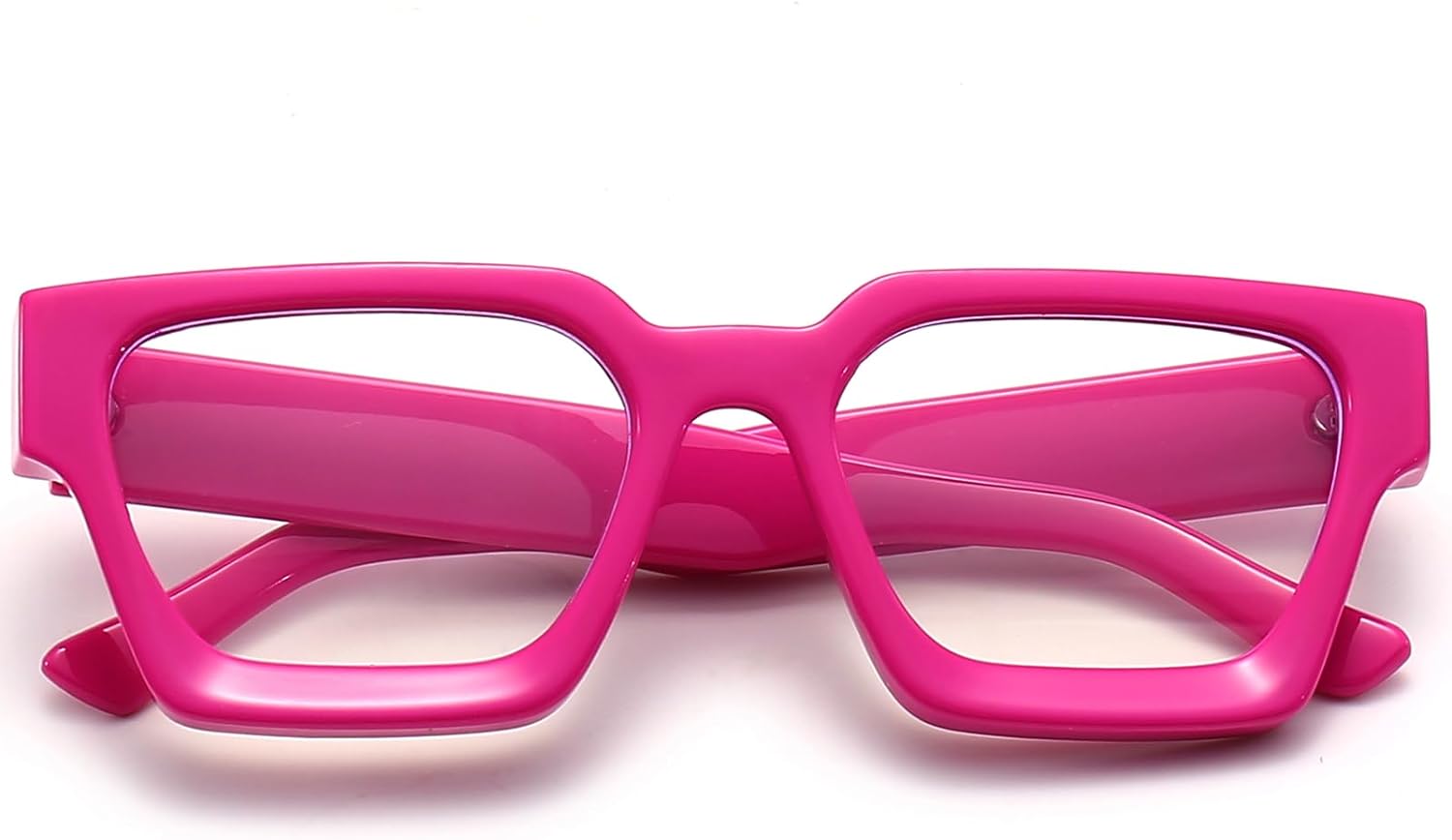 Square Thick Frame Glasses for Women Men Fashion Blue Light Glasses Trendy Chic Computer Eyeglasses (Rose Red)